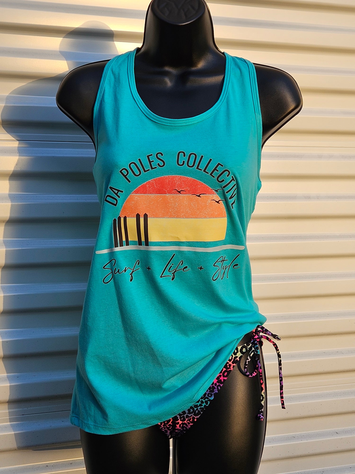 Ladies Da Poles Sunrise Logo Tank - Tahiti Blue