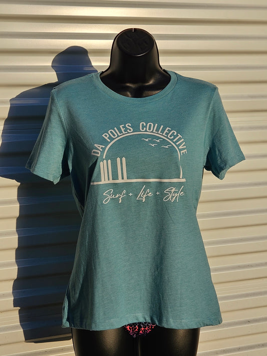 Ladies Da Poles Sunrise Logo Tee - Heather Blue Lagoon